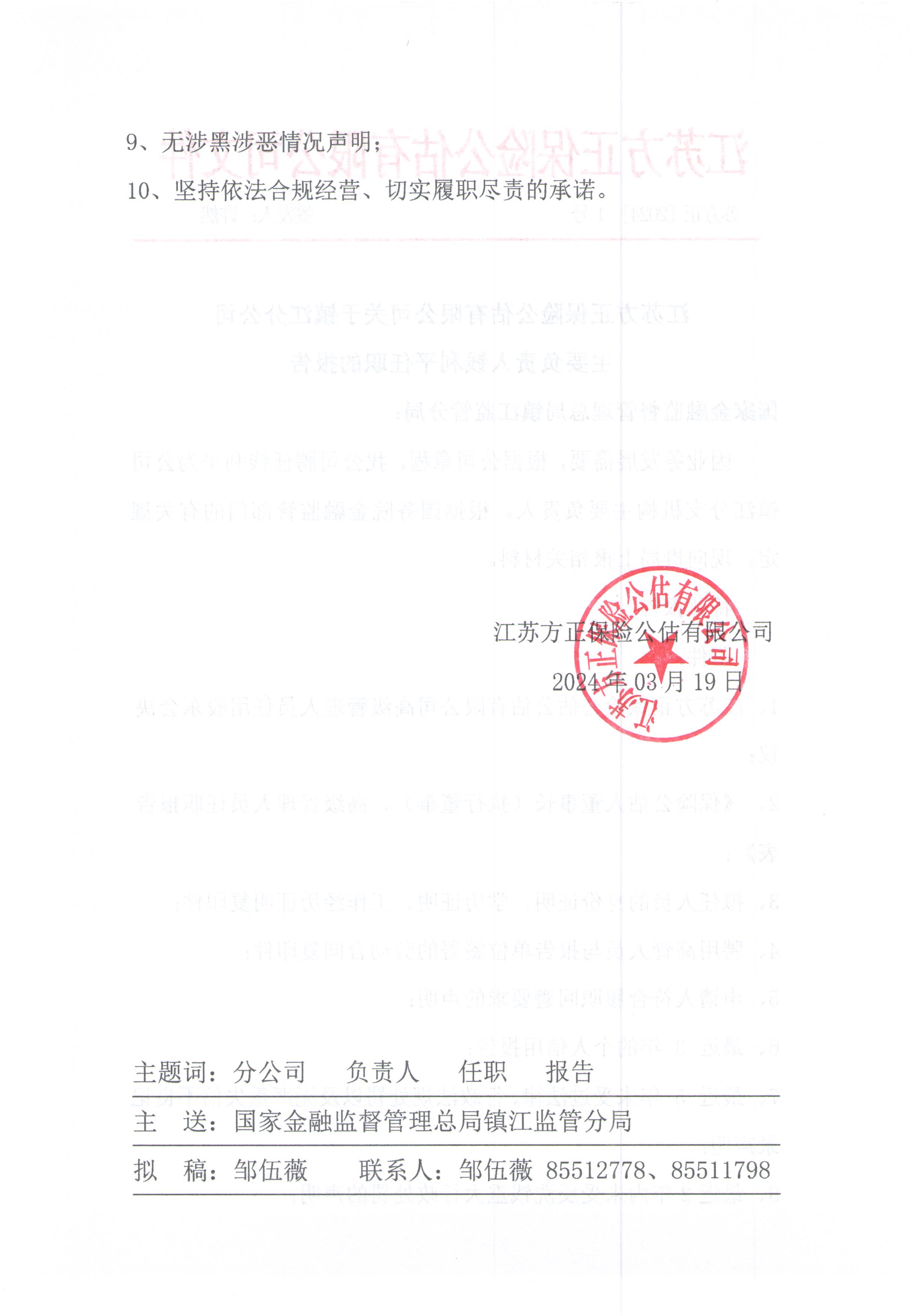 根據(jù)國(guó)家金融監(jiān)督管理總局鎮(zhèn)江監(jiān)管分局的要求,現(xiàn)就鎮(zhèn)江分公司主要負(fù)責(zé)人錢(qián)利平同志任職事宜予以公示,公示時(shí)間:2024年3月27日—2024年4月1日。